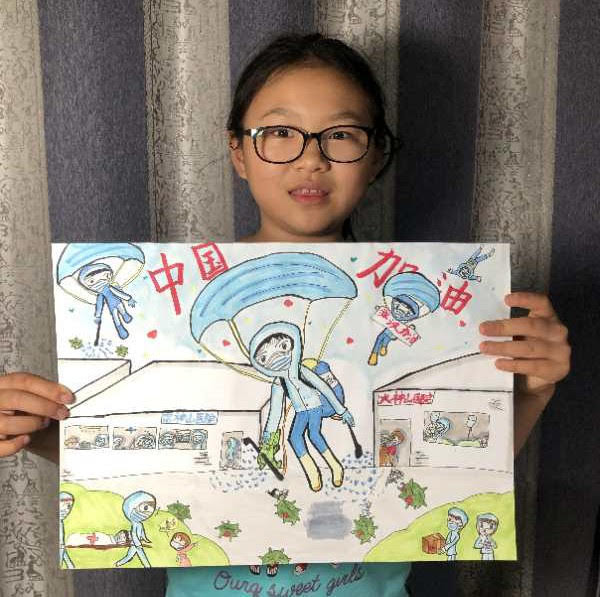 - ㉑世界中でコロナと闘う皆さんへ 白衣天使从天而降(白衣の天使が空から舞い降りて) 李雨霏(りうひ) 中国 上海