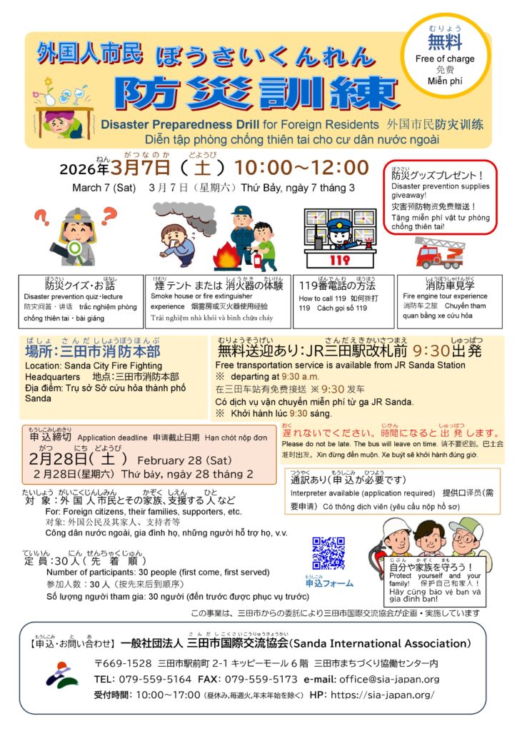 【募集】外国人市民防災訓練/Disaster Preparedness Drill for Foreign Residents/外国市民防灾训练/Diễn tập phòng chống thiên tai cho cư dân nước ngoài