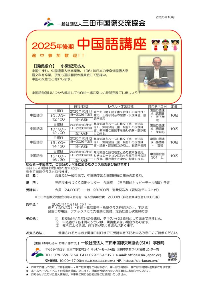 中国語③ | 日曜日 | 13:00~14:30 | 発音・基本文法 |