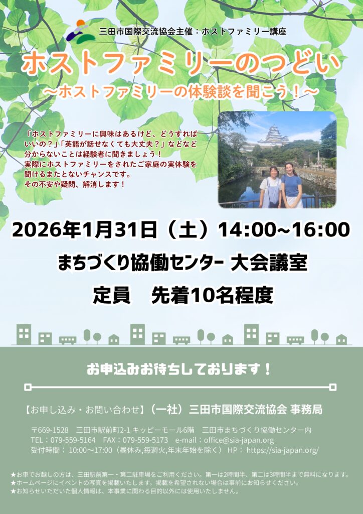 【募集】ホストファミリーのつどい~ホストファミリーの体験談を聞こう!~