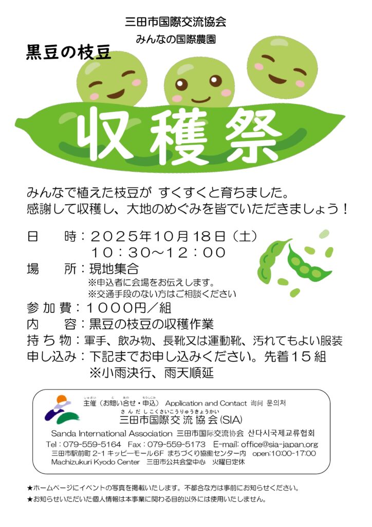 チラシのダウンロードはこちらからどうぞ👇 国際農園「収穫祭」10月くろまめ